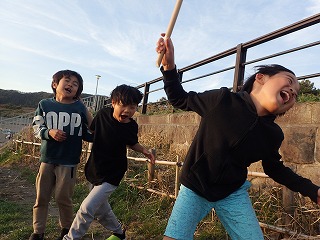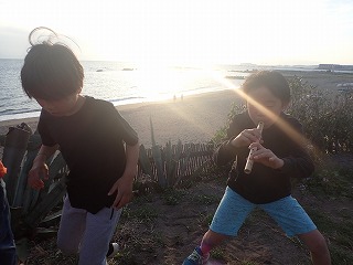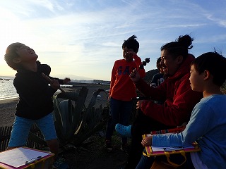 テーマを投げかけたときは少し悩んでいた子どもたち。でも、神社で鬼ごっこをしながら、海までの道を歩きながら、少しずつ自分なりの答えを見つけていったようです。