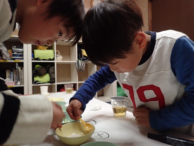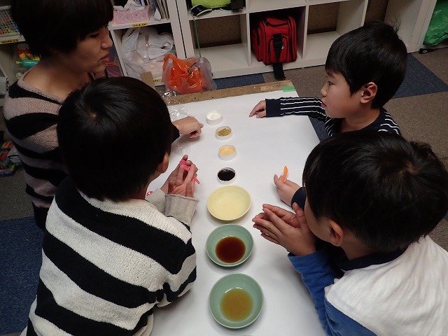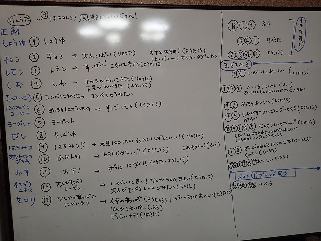 最初は何かわからなくても果敢に初めてのチャレンジする子、美味しくて踊り始める子、笑い続ける子、周りの様子をみてチャレンジする子、ひととおり試したらとにかく実験的にブレンドして人に味見して反応をみる子と様々な姿が今日も見ることができました。